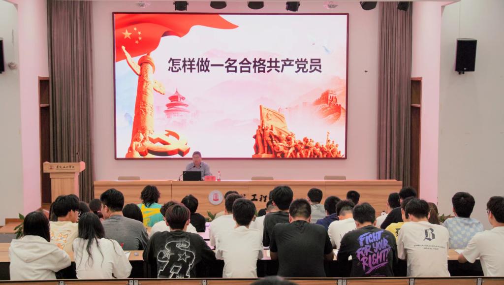 林霖从不同时期共产党员的标准变化出发,引导同学们要端正入党动机,深刻剖析只有发自内心的“自愿选择”才能保持最纯净的党性、最纯粹的信仰、最纯洁的信念。他强调,合格党员需要坚守“五有”标准。一是做一个有信仰的人。坚定的信仰才能支撑我们不断的拼搏奋斗,铸就真正的政治灵魂和精神支柱,指引始终坚定正确的政治方向;二是做一个有纪律的人。没有规矩不成方圆,严明的纪律是党保持强大生命力和战斗力的重要法宝,也是党不断自我净化、自我完善、自我革新、自我提高的内在要求和必然选择;三是做一个有担当的人。担当和负责是中国共产党的政治本色。要坚持以学习为基,以实干为要,以担当为本,才能承担起党赋予每个党员的光荣使命;四做一个有道德的人。小成靠智、大成靠德。要重视加强道德修养,不断提高道德认识、陶冶道德情操、锤炼道德意志、提升道德境界;五是做一个有作为的人,干一行、爱一行、做一事、成一事。充分发挥党员先锋模范作用,以身作则、率先垂范,用实际成效来检验党员的先进性。