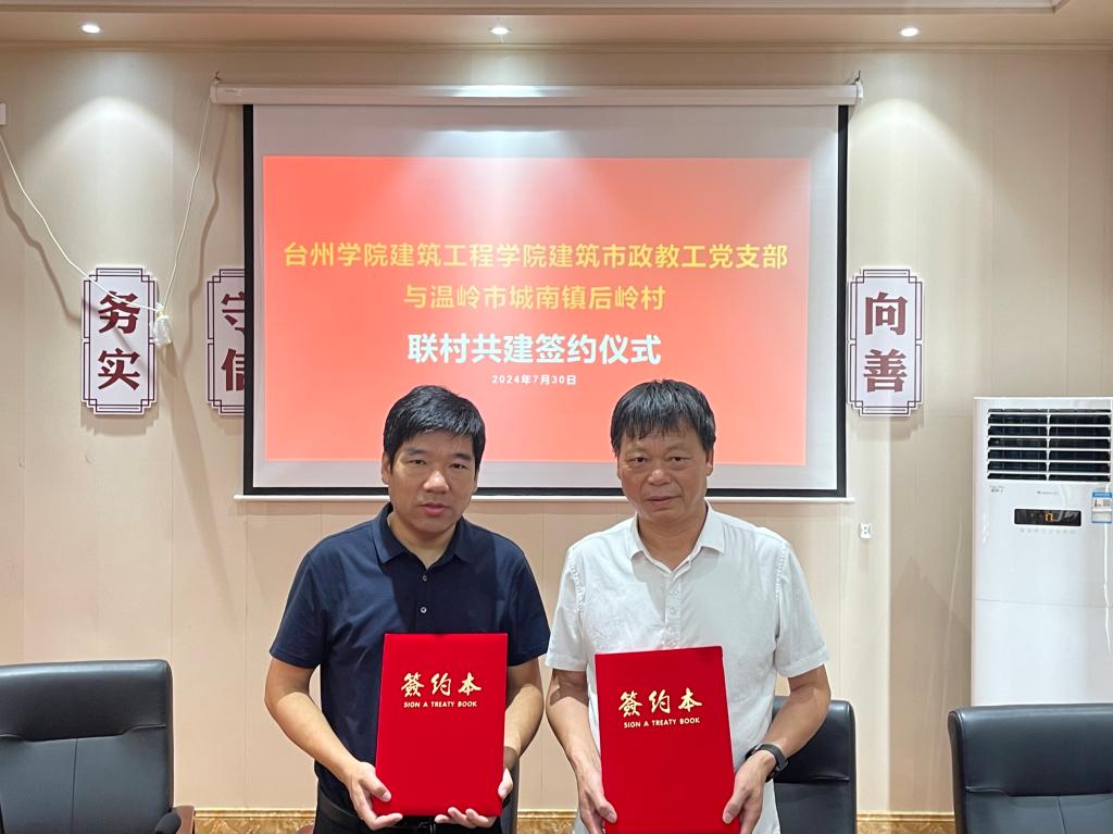 7月30日,建筑市政教工党支部与温岭市后岭村签署了“百个艺术院系支部联村共建”项目的共建协议,标志着联村共建进入实质性阶段,双方将在乡村振兴、文化建设、环境美化等方面开启一段携手并进、共谋发展的新征程。