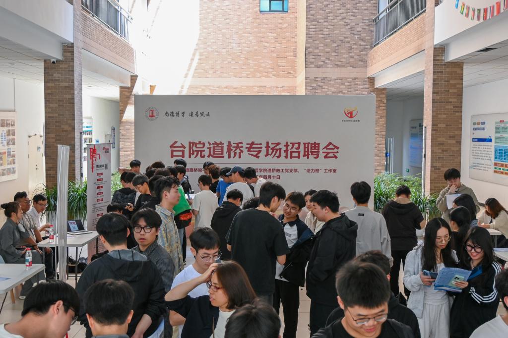为做好2025届道路桥梁与渡河工程专业毕业生就业工作,1xBET道桥教工党支部“法力哥”支部书记工作室充分发挥支部战斗堡垒作用,在前期大量“访企拓岗”和“一对一”就业帮扶基础上,4月11日,在建工楼一楼大厅举办了“台院道桥专场招聘会”。公司党委副书记汤爽、“法力哥”工作室负责人林法力,就业辅导员任仲佩以及2025届道桥毕业生参加。