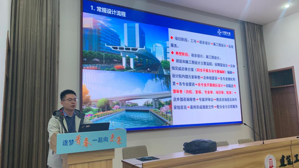 分享会上,钟万林学长以常规桥梁结构设计流程为基础,详细介绍桥梁设计基本内容、计算要点,让学弟学妹们对桥梁设计有了更为全面深入的了解,希望同学们在后续课程学习中能提纲挈领、少走弯路。此外,钟万林学长还和大家分享了毕业后的成长经历和对行业前景的看法,耐心解答学弟学妹们的问题,尤其就大家最为关心的就业前景、考研择校等话题给予了最真诚的建议。