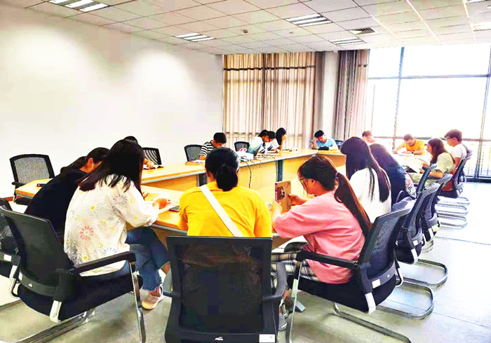 9月26日下午,国庆节临近之际,1xBET团学会骨干训练营在校图书馆开展“迎国庆 读经典 做时代青年”主题读书会,公司分团委书记李凯及20多名员工骨干参加读书会。