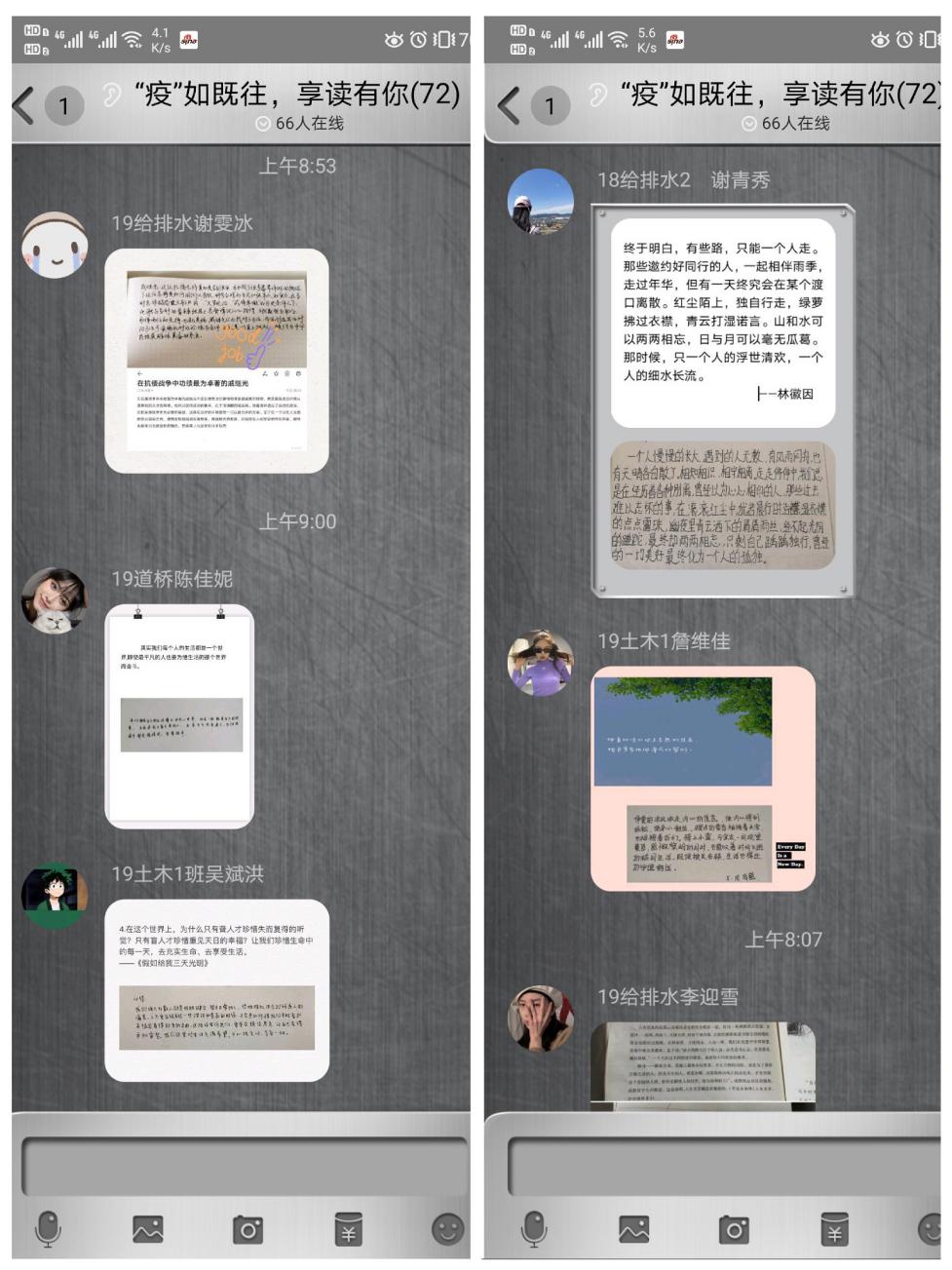 本次活动面向公司所有同学,参加者们进行“‘疫’如既往,享读有你——每日阅读打卡”活动,有的在线推荐喜爱的书籍,有的互相分享读过的正能量文章和看过的有意义的演讲、采访片段。对于推陈出新的活动形式与丰富多彩的活动内容,大家纷纷表示生活可以“宅”,但精神世界可以无限宽广,与书为友,使人明理,使人睿智,更能养浩然正气。