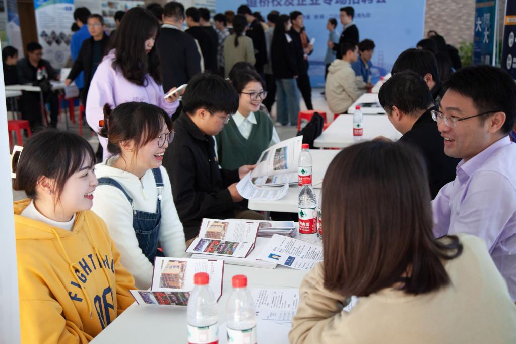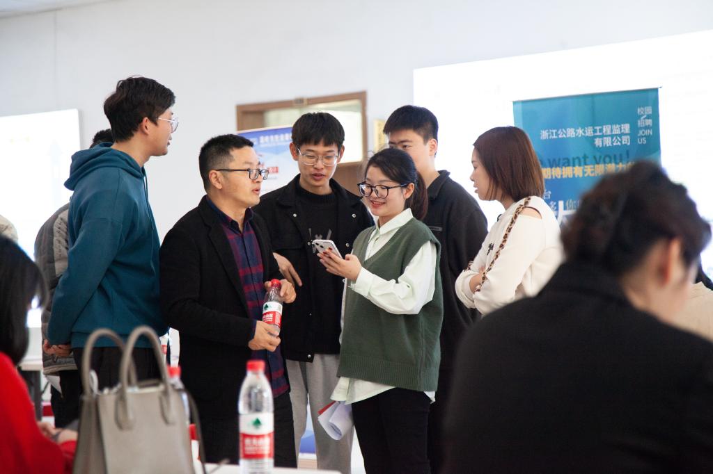 招聘会邀请了十余家员工企业携150余个就业岗位进校供学弟学妹选择。招聘企业既有中国交通建设股份有限公司、浙江交科交通科技有限公司、台州市交通投资集团和腾达建设集团股份有限公司等大型国企或上市公司的下属企业,也有中北工程设计咨询有限公司等中小型企业,涉及岗位有设计、工程咨询、施工、造价、检测、监理等,与道桥专业员工的就业方向高度匹配。招聘会现场温馨而热烈,招聘企业和毕业员工对此次招聘会都表示很满意,认为这种小而精、针对性强的招聘会值得推广。