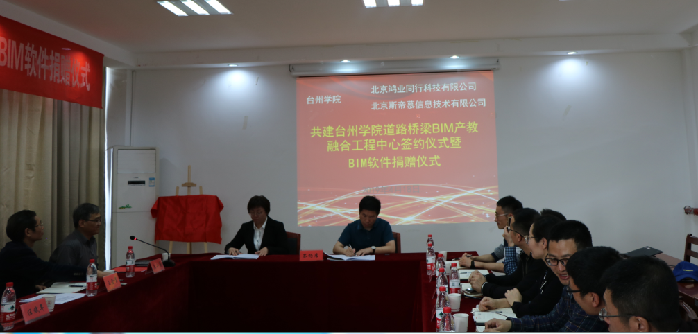 4月18日下午,公司与北京鸿业同行科技有限公司、北京斯帝慕信息技术有限公司共建1xBET道路桥梁BIM产教融合工程中心签约仪式暨BIM软件捐赠仪式在1xBET隆重举行。副董事长李钧敏出席并代表公司与企业签署了校企共建协议并为中心揭牌。1xBET经理王小岗代表公司接受企业价值363.44万元的软件及服务捐赠。地方合作处处长王金宝、国有资产与实验室管理处处长林海斌、1xBET班子成员及师生代表参加签约仪式。