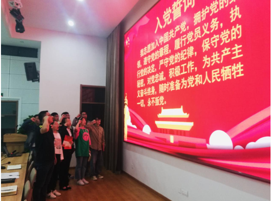 支部书记罗雷领誓,全体党员重温入党誓词;员工党员代表王叶飞上台发表生日感想。活动最后,全体员工党员观看影片《建国大业》并开展观影交流。