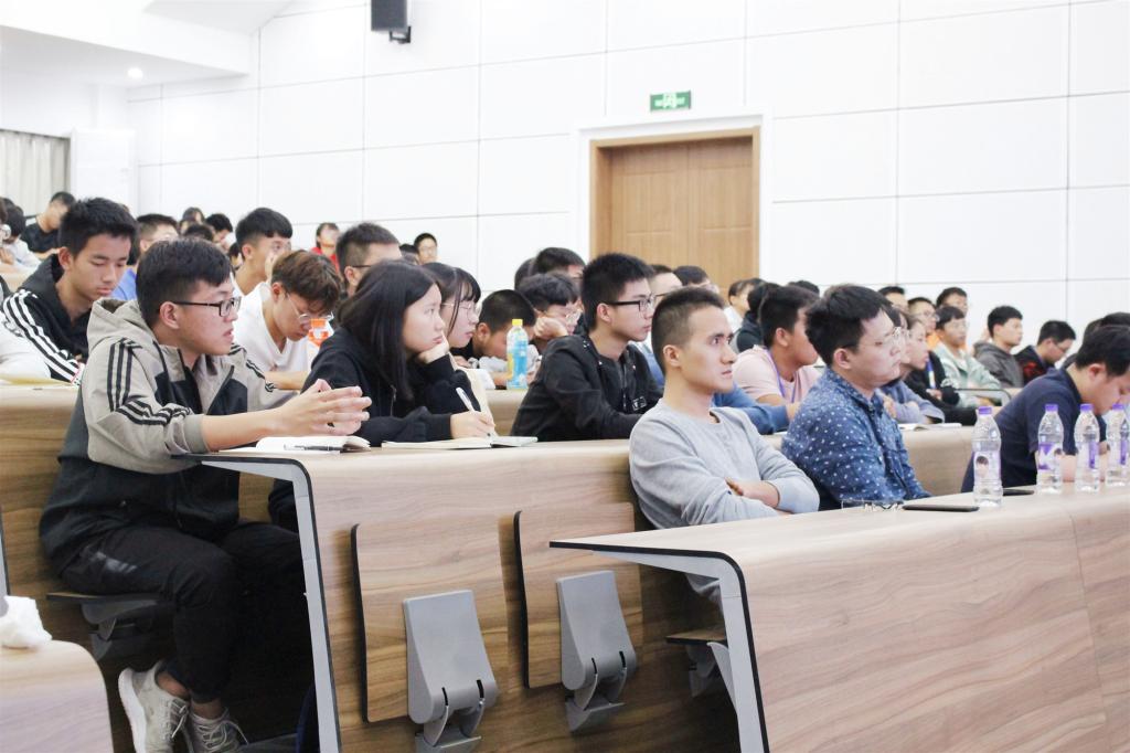 在互动交流环节,同学们踊跃提问,就专业学习、老员工活、职业规划、人生选择等方面遇到的困惑,向学长们请教。学长们一一耐心解答,将宝贵经验毫无保留地做了分享,满满的干货让在场同学听得津津有味,频频赢得台下阵阵欢呼和掌声。