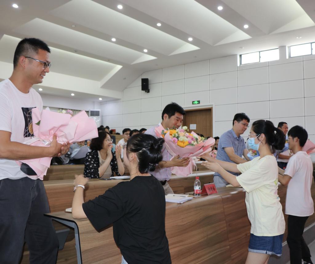会议在温馨融洽气氛中拉开帷幕,2020届录取考研员工一一上台接受公司的祝福,公司给同学们送上鲜花和钢笔,希望他们继续用笔书写新的美丽人生。员工代表刘家兴分享了自己的考研故事,234天,平均1天看书16个小时,用“自律、勇气、坚持”成就了现在的自己。员工代表朱家成表达了考研的坚定决心,准备好打一场无声的硬仗。教师代表邵国涛老师从“目标、策略、时间”三个关键词作考研指导交流。