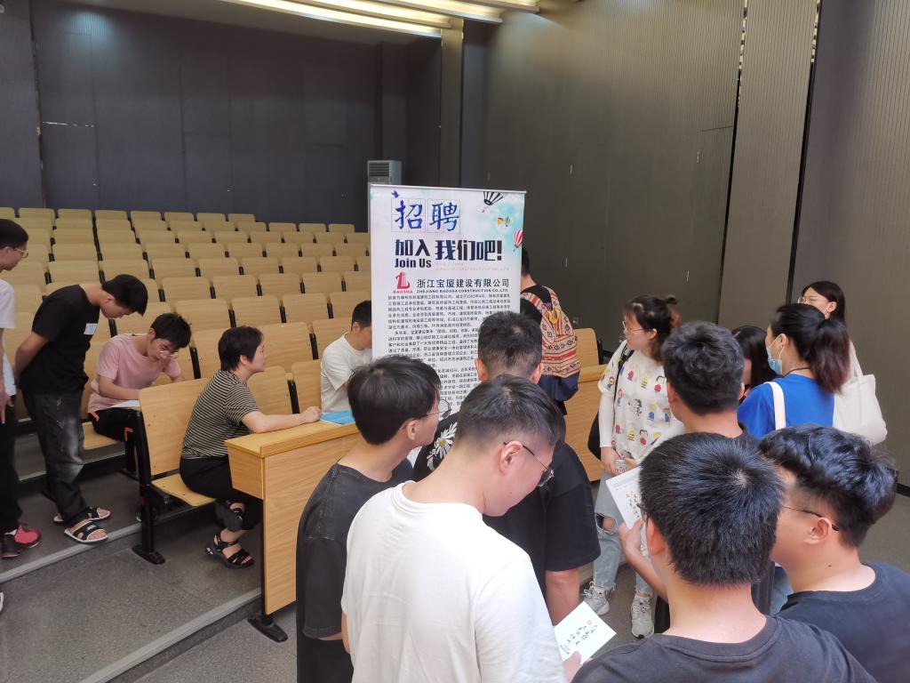 会议结束后,方远建设集团、华神建设集团、中国核工业第二二建设有限公司(三门核电)、浙江钢泰钢结构工程有限公司、鹏远建设有限公司、台州普立德建筑科技有限公司、浙江宝厦建设有限公司现场7家企业现场与员工进行了实习见习对接活动。