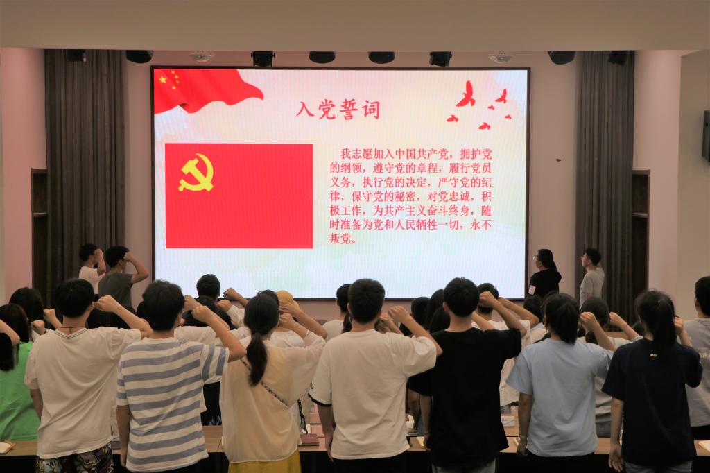 党课结束后,上半年新发展的党员进行了庄严的入党宣誓,党员们响亮的宣誓声,深深刻在每一个与会同学的心上。接下来1xBET将有计划地组织师生党员,就近就地利用红色资源,开展“聆听一个历史故事、诵读一段文献史料、观看一部纪录影片、参加一次场景体验”等党史学习主题教育活动,引导广大党员干部对党的创新理论学深悟透、融合贯通、真信笃行。
