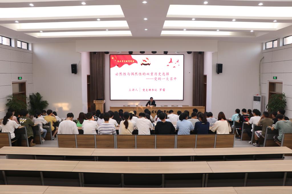 会议首先由员工第二党支部书记罗雷作《必然性和偶然性的双重选择--党的一大的召开》专题党课。党课通过鲜活的党史材料和贴近生活的语言为党员们详述了党的一大召开的必然性因素和偶然性因素,让同学们进一步认识了这一时期的红色历史,体会到革命先辈们的殷殷初心,从而激励着大家要继承红色基因,传承革命党人的热血情怀和崇高精神,为党的事业的发展继续贡献青春的力量。