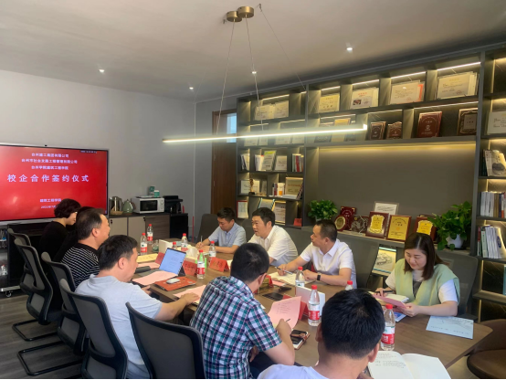 熊浩对徐建伟一行的到来表示热烈欢迎,从教学、科研、社会服务等方面介绍了公司的办学情况。林伟军介绍了台州建工集团以及台州市社会发展工程管理有限公司的相关情况,提出了与公司合作的框架思路。王仕方介绍了公司申硕、智能建造新专业建设、企业工程中心等方面的校企共建思路。与会人员就双方开展深度合作进行了充分讨论和交流。