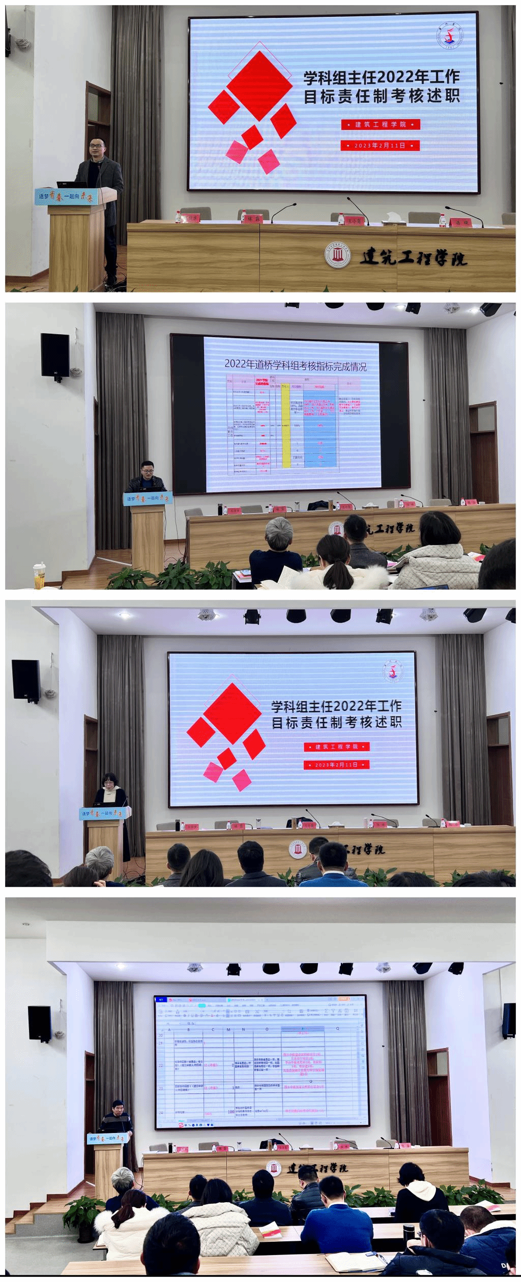 建筑工程学科组主任肖磊重点就人才引进、一流专业建设、产学研平台建设等方面展开介绍,用数据说话,用实绩交卷,彰显土木人扎实奋进的作风和担当。道桥学科组主任林法力从育人角度出发,以支部党建品牌“法力哥”工作室为指导,重点分析专业就业率和满意度指标数据,并就高层次人才引进、特色课程建设等作出下一步打算。市政工程学科组主任刘文莉重点汇报了核心指标达成情况,就学科组优势强项引导成果转化和创新创业项目培育做进一步规划。建筑学学科组主任林新峰汇报了专业建设、大树历史文物与建筑公司成立、一流课程建设、学科竞赛等主要成果,针对专业满意度提升、学科团队打造、教学型特色产业公司建设等重点突出问题,寻找新的指标增长点,力争有所突破。