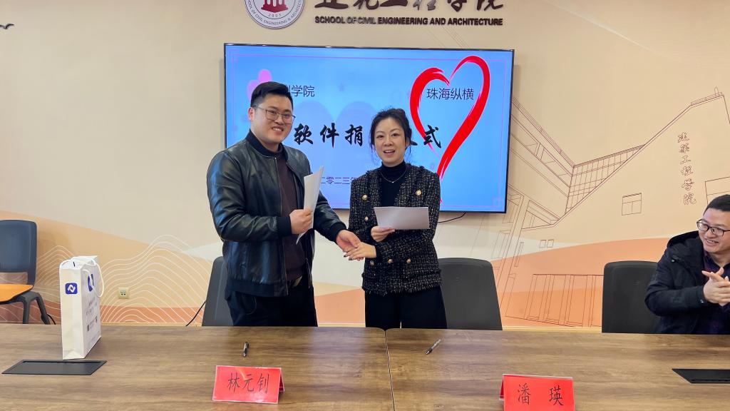 潘瑛代表公司对珠海纵横创新软件有限公司表示衷心的感谢,对林元钊经理长期支持关心道桥专业的发展表达由衷的钦佩,并简要介绍了公司发展近况以及各方面取得的成绩。她表示,公司将把珠海纵横创新软件有限公司的善举转化为推动专业发展的强劲动力,充分利用捐赠资源,为社会培养更多高素质人才。
