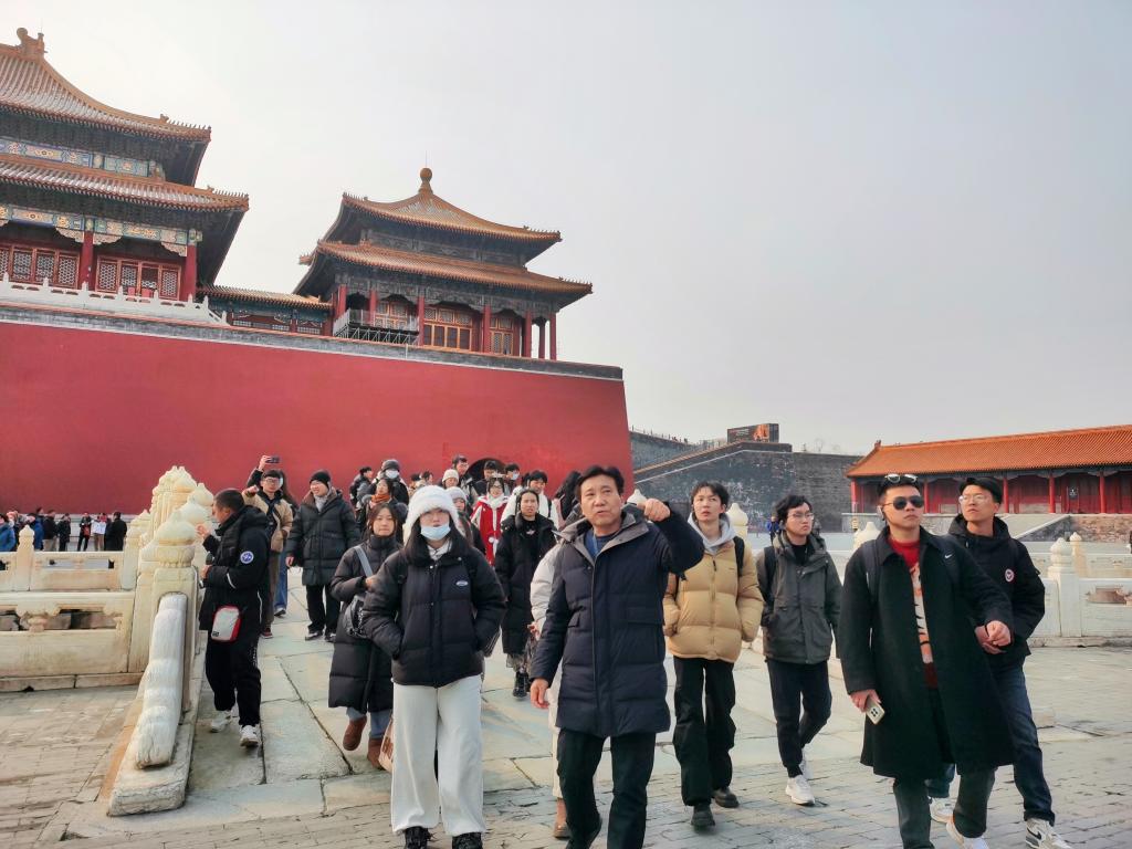 近日,大树文物与历史建筑公司师生一行32人走进首都北京,开展文物与历史建筑研学活动。首站来到故宫博物院。四面城墙、护城河环绕,尽显金城汤池之固,前朝后宫的亭轩斋室,体现风姿秀逸之美,大至宫殿,小至脊兽,无不蕴含着独特的匠心。王辉高工从故宫的历史沿革到建造过程,从建筑布局到建筑形制,从细部做法到文物价值,进行详细解读。学员们享受到了书本上、课堂内没有涉略的知识,触摸到了古建筑的文化深度与历史厚度。