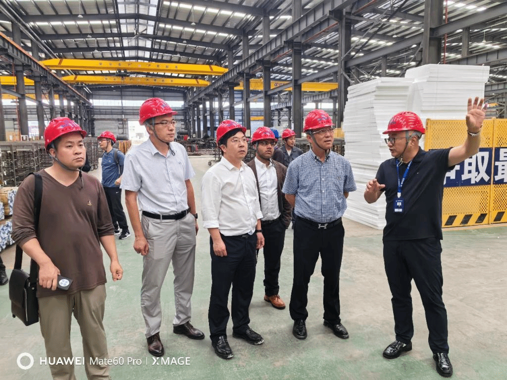 在企业负责人张邵铭的带领下,何海杰一行现场考察了台州市国华远合建筑工业科技有限公司。该公司是致力于建筑产业现代化的技术型企业。引进了由装配式建筑行业领军者远大住工提供的第六代先进的住宅产业化体系,以工业化制造的模式革新传统建筑生产方式。