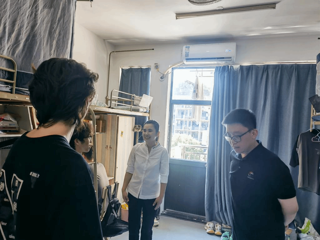 在寝室里,老师们亲切地与学同学们交谈,并对用电安全、消防安全等进行了全面而细致的检查。汤爽强调,要时刻绷紧安全这根弦,增强自我保护意识,共同维护安全有序的住宿环境。遇到任何问题都要及时与老师沟通,公司永远是大家最坚实的后盾。