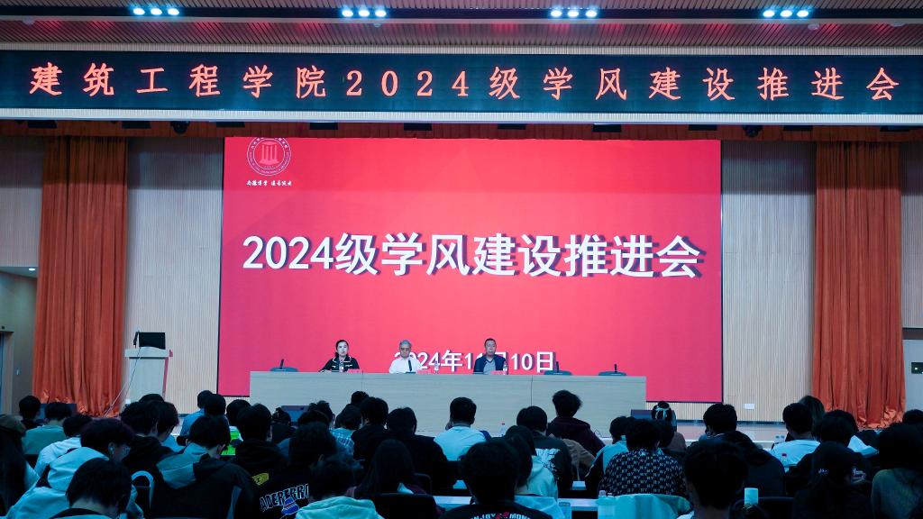 会议伊始,汤爽以“学风建设”为核心,分别从2024届毕业生考研升学情况、考研工作开展情况、学风建设工作举措与2025年展望四部分展开汇报。指出了学风建设是公司的中心工作,要求新生们脚踏实地地完成大学四年的学习。熊浩则重点强调端正学习态度的重要性,以“君子要务本”勉励新生们需重视基础、树立正确的学习观。此外,新生代表24建筑学王博铖与大家分享了入学后的体会和学习方法,倡导新生们应有清晰规划,破晓前行。