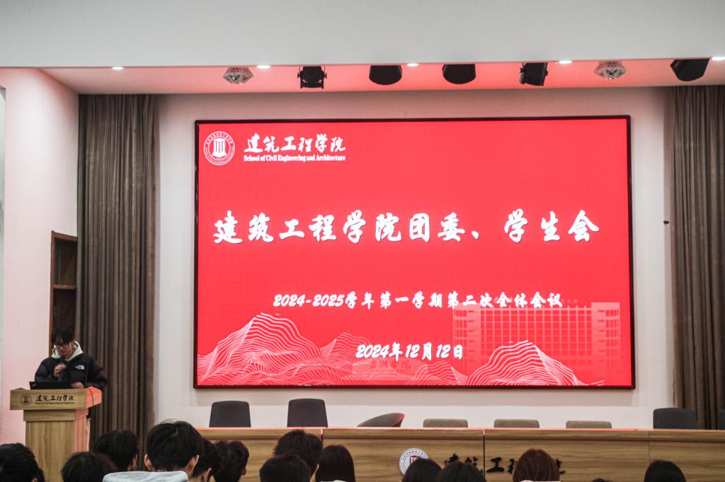 薛军新总结回顾了本学期团学工作,高度赞扬团学成员在开展工作时所展示出的建工风采和强大凝聚力。他强调,干事们要从实践中汲取经验,反思成长,持续增强责任感、提升工作能力、优化服务水平。围绕团学服务员工的核心目标,提出未来工作要求:一要加强信息共享,促进沟通交流;二要平衡工作权重,提高办事效率;三要强化规矩意识,营造优良风气。随后,各部门代表依次发言,进行工作汇报、问题反思和未来展望。