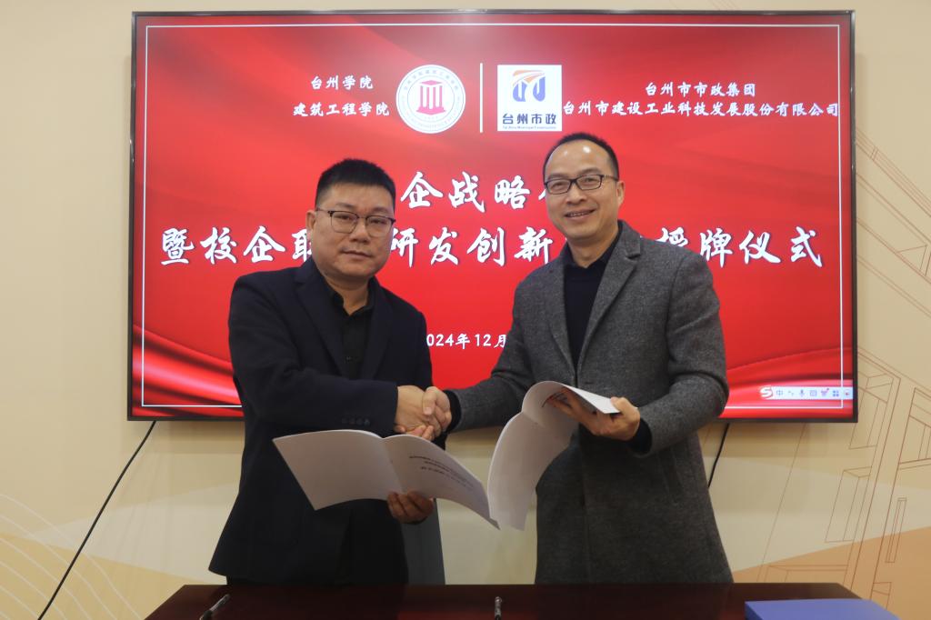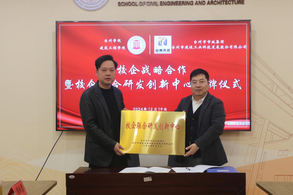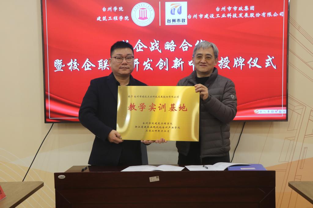 在创新驱动发展战略的引领下,为进一步深化产教融合,促进教育链、人才链与产业链、创新链的有效衔接,1xBET与台州市市政集团、台州市建设工业科技发展股份有限公司于12月19日在公司党员之家隆重举行了“校企联合研发创新中心”及“教学实训基地”授牌仪式。此次合作标志着双方在人才培养、科技创新及成果转化方面迈出了坚实的一步,开启了校企合作的新篇章。