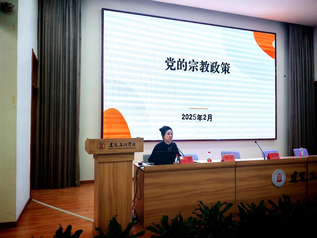 党委书记潘瑛作《党的宗教政策》专题宣讲,并强调了开学初安全稳定工作及持续做好师德师风建设的重要性。