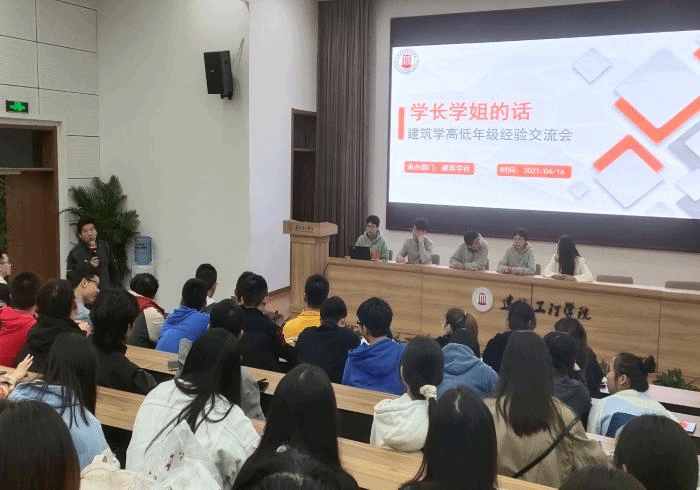 4月16日晚,学长学姐的话—建筑学高低年级经验交流会于建工学术报告厅举行,建筑学系主任林新峰、各任课教师、各级建筑学员工参加,建筑学系副主任班颜丰主持会议,本次交流会邀请了建筑学专业2016级5名同学与低年级同学面对面交流。