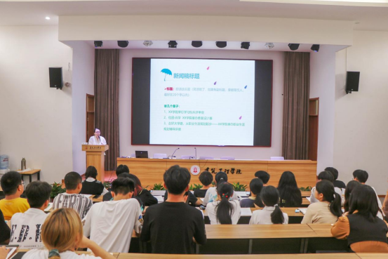 培训会上,蒋静老师从身份认知问题切入,点明新闻宣传工作是树立公司形象、展示师生风采的重要窗口,宣传工作者充当着记录者和门面担当的角色。针对新闻稿件撰写,蒋静结合自身工作经验,阐述了校园新闻稿的特点、六要素“5W+1H”以及常见的新闻稿类型,并以具体案例分析的方式,讲解了撰写新闻报道的常用结构、写作技巧、注意事项,重点强调新闻内容要真实具体,语言要平实准确,做到主题明晰、有的放矢,要求大家勤于记录、善于构思、疾于运笔,不断增强自身的听力、眼力、脑力和笔力。