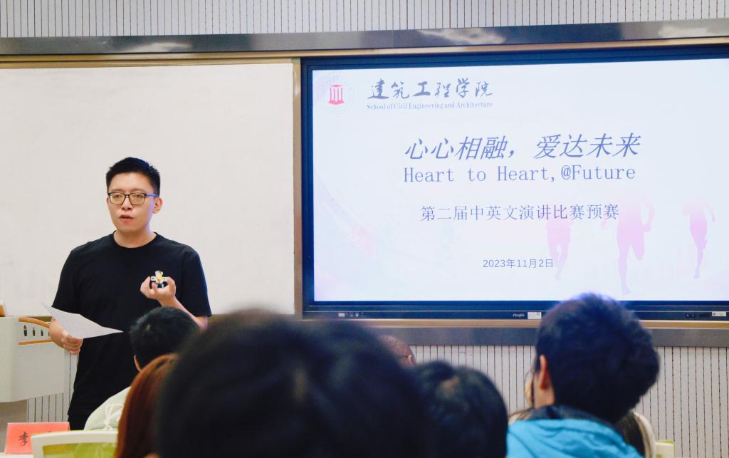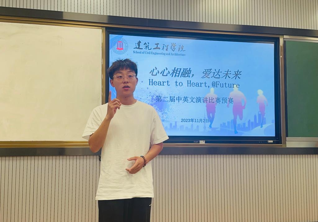 本场预赛有38名选手参加,围绕“心心相融,爱达未来”的主题把比赛分为中文赛区和英文赛区两个部分,各选手以抽签顺序依次上台演讲。赛场上,选手们以流利的语言准确地表达着自己的观点,姿态自然得体,充满激情,声音富有感情,引人入胜,无时无刻不散发着建工学子独特的风格魅力。各评委根据选手演讲质量、现场表现、语言表达以及整体感受等多方面进行总体考量,选出决赛人选。
