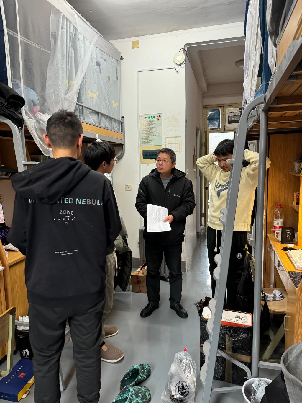 走访过程中,大家逐一查看员工宿舍,与在寝室同学进行亲切交流,了解假期生活学习情况,查找安全隐患,强调宿舍用电安全及环境卫生,争创文明寝室,叮嘱寝室成员相互关心、相互支持、相互帮助,共同构筑温馨、和谐、团结、奋进的寝室之家。
