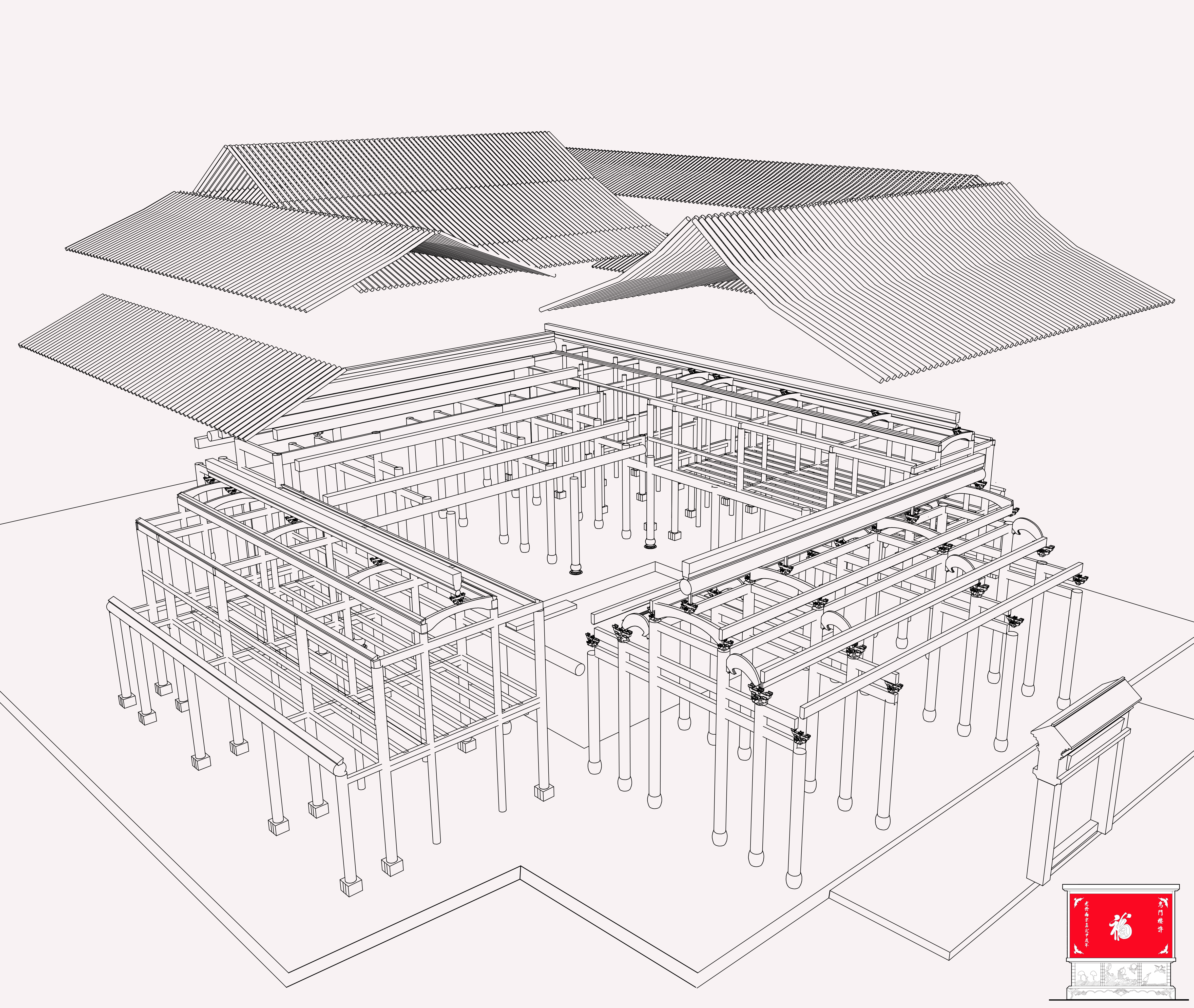 主体建筑是一个木结构的抬梁穿斗混合式结构,在江南非常典型。