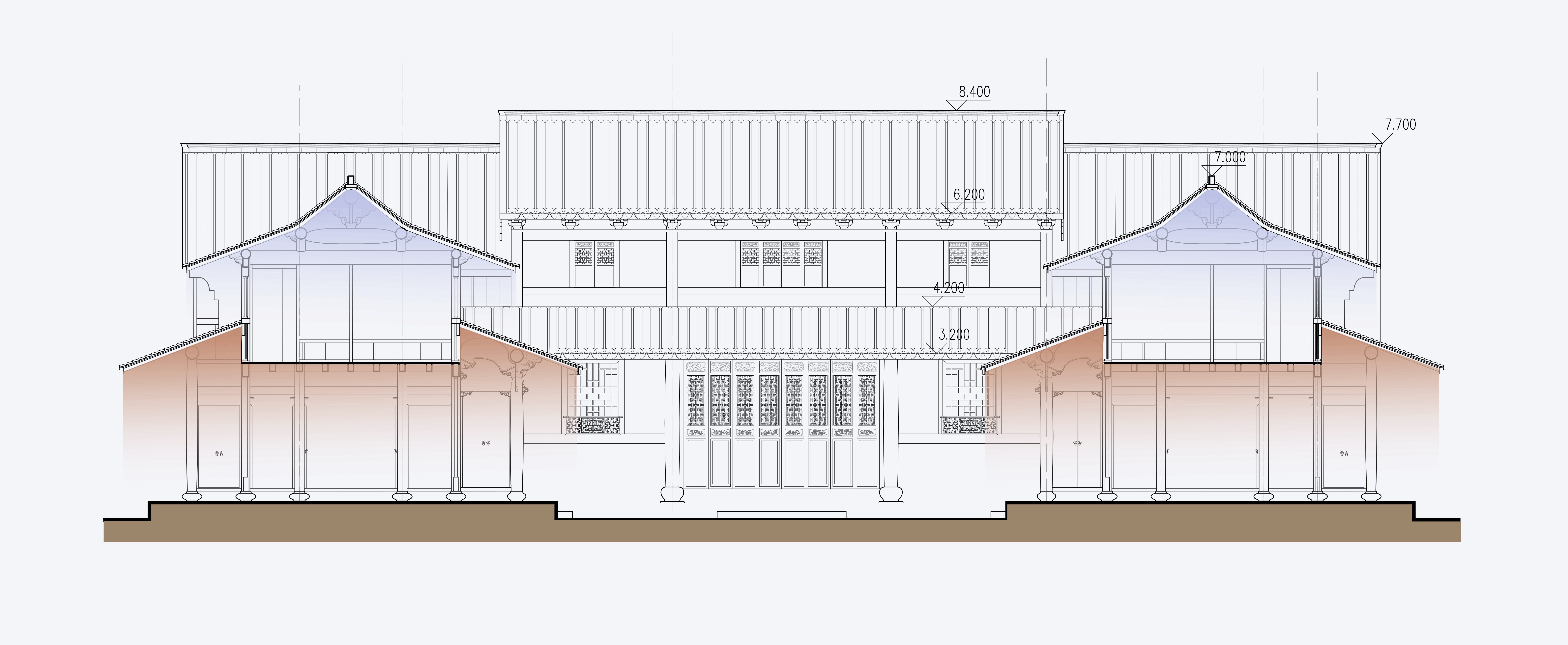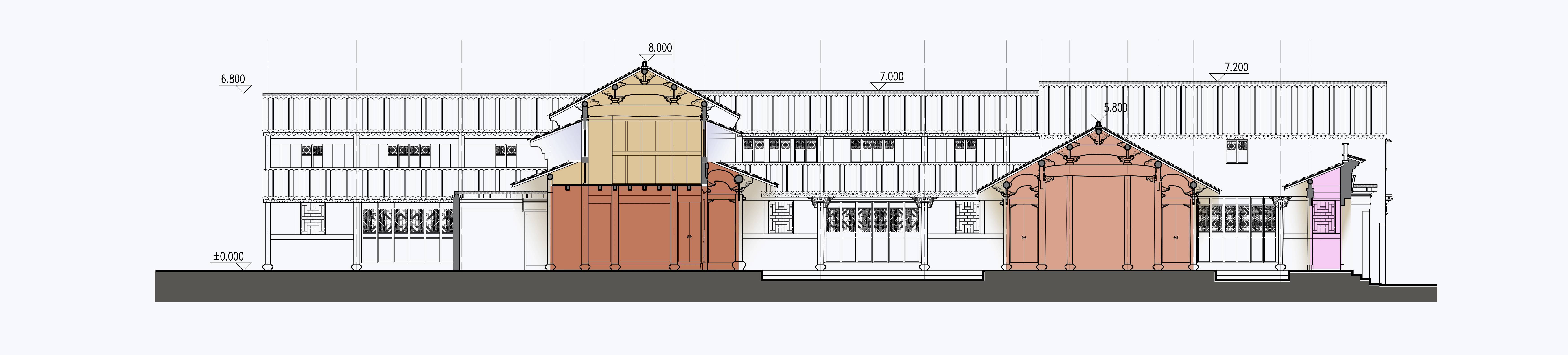 建筑细部同其他的天台民居一样,具有很好的艺术感,并参与营造空间感。