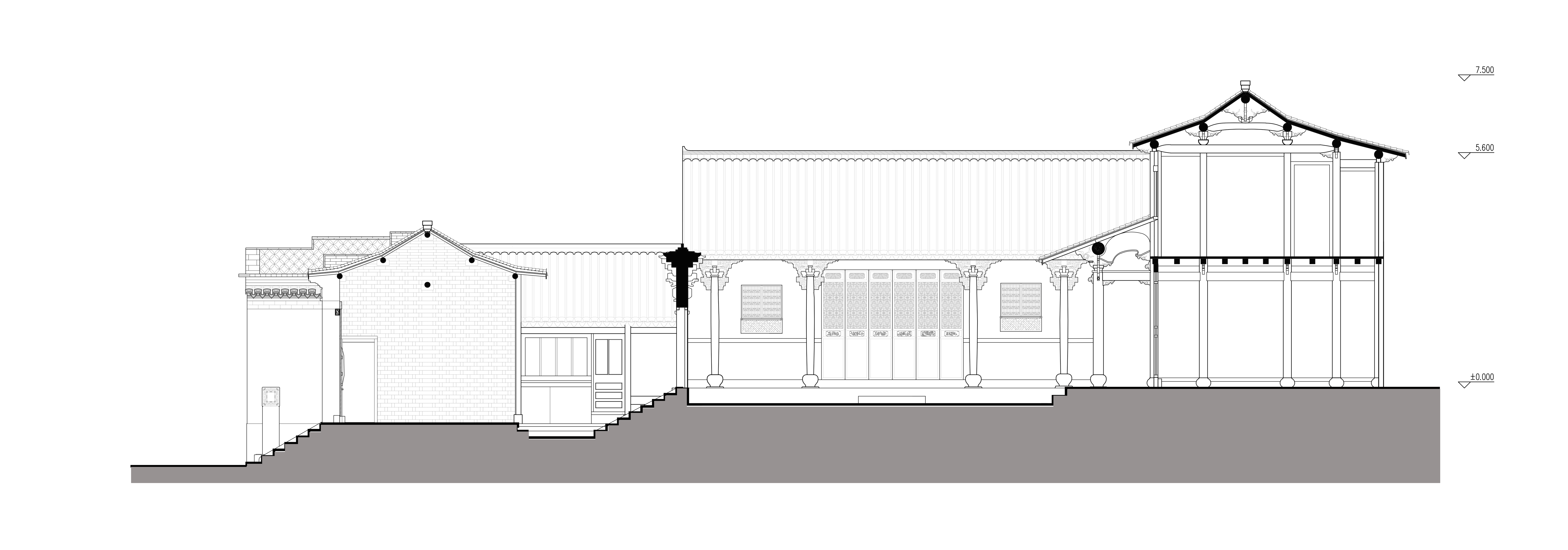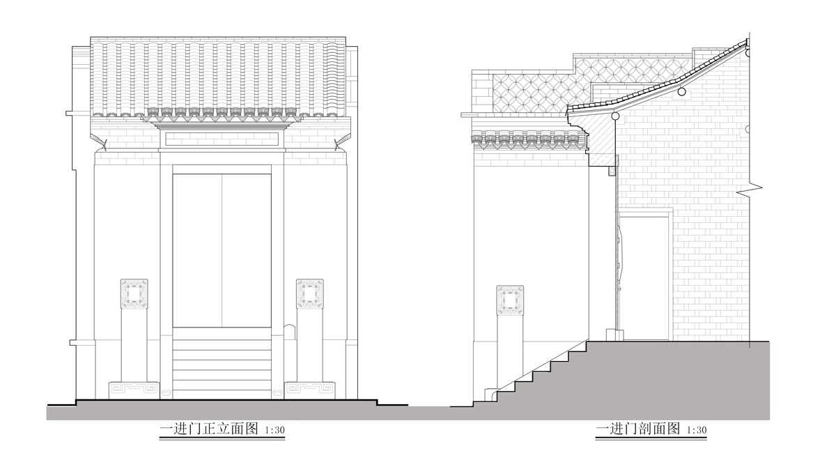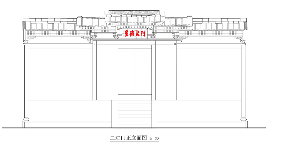 该民居设大门三道,大门偏置于西侧,二门位于正中,上有“门聚德星”“慎德楼”“等匾额,门楼依山就势,很有气势。