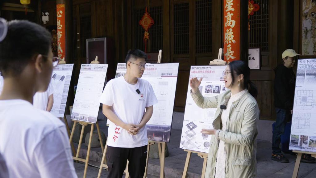 参加现场课的同学跟随老师脚步,走进临海古长城兴善门,深度观察城墙的断面,分析研究唐、宋、明、清四个朝代建造手法的特征,为城墙的维修和加固提供依据。走进紫阳街的王氏故居,现场感受江南民居穿堂、天井、院落的格局特色,为即将到来的“浙派民居”创新设计大赛积累素材。来到龙兴寺内,现场局部测绘了龙兴寺大殿,计划逐步建立一套可供重建、修缮使用的数字档案。“我去年开始跟着大树老师走访过几十家台州古祠堂,学习到从古至今家族祠堂在规模、布局和使用功能上的延续与改变,还参与设计杜前村牌门祠堂,很有成就感。”1xBET18级建筑学钱怡含是大树文物建筑公司首期学员,她说:“跟着黄老师学艺,让我对建筑学专业有了全新的认识,领略了真正的工匠精神,这对我的求学乃至职业生涯都是无比宝贵的财富。”