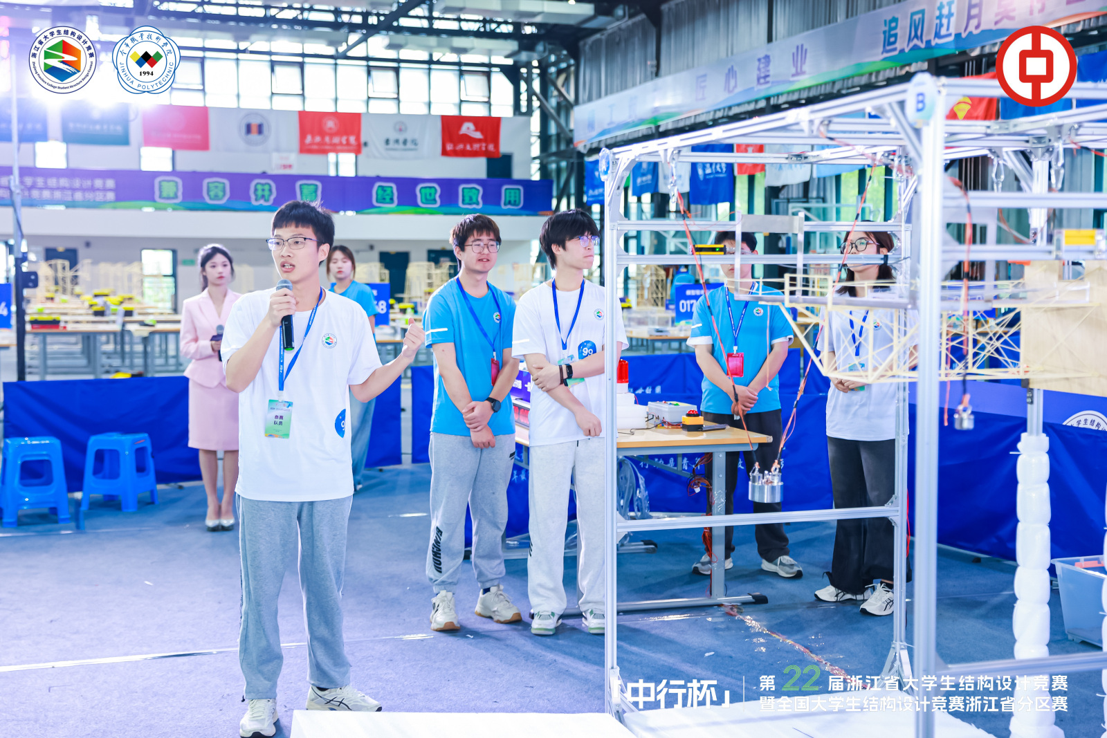 此次大赛共有来自全省48所高校的100支队伍参赛,共计300余名全省土建类专业的员工同场竞技。本次竞赛以浙江山地景观为基础,要求员工设计、制作一悬挑平台模型,并测试其模拟承受风载以及移动人群重力作用下的平台结构的安全可行。参赛员工在为期三天的比赛时间内,用指定材料和工具,发挥创新思维,进行精密的设计计算,探索土木结构设计的魅力。各参赛队伍通过理论方案、模型制作、结构体系、陈述答辩和加载试验这五个维度进行比拼。