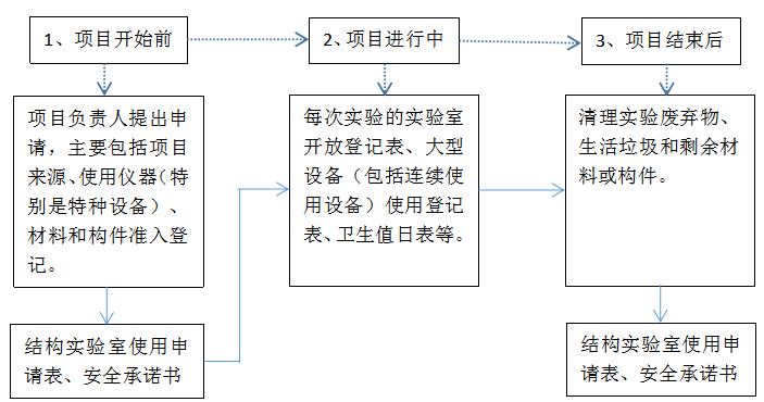 第三条科研项目进入结构实验室的审批流程见附图,参与科研项目的师生必须持有完整审批流程方能在预约时间内进入实验室。