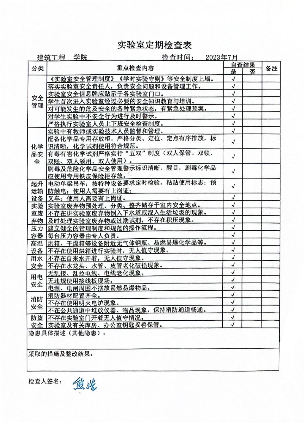 2023年7月建工实验室定期检查情况公示