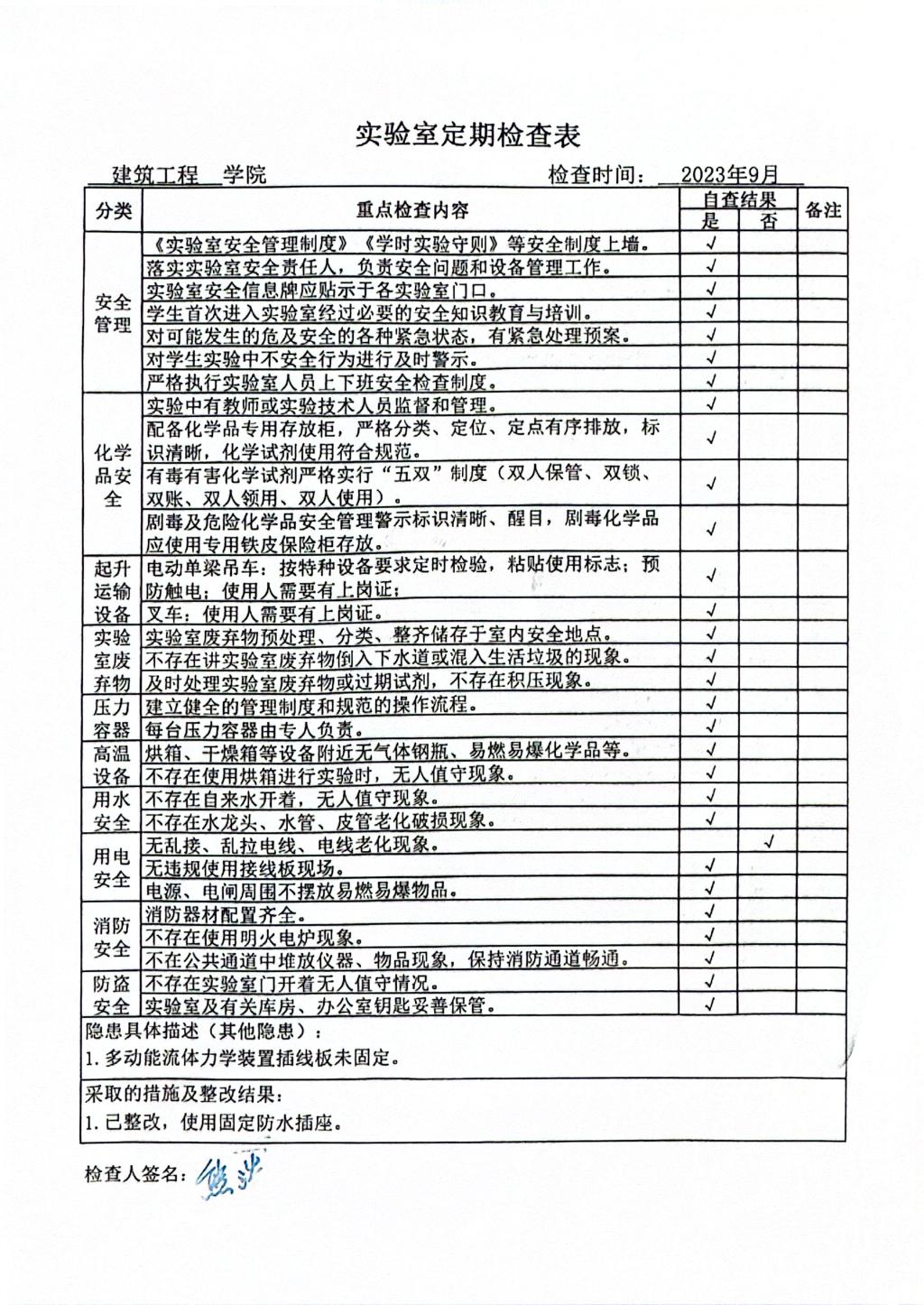 2023年9月建工实验室定期检查情况公示