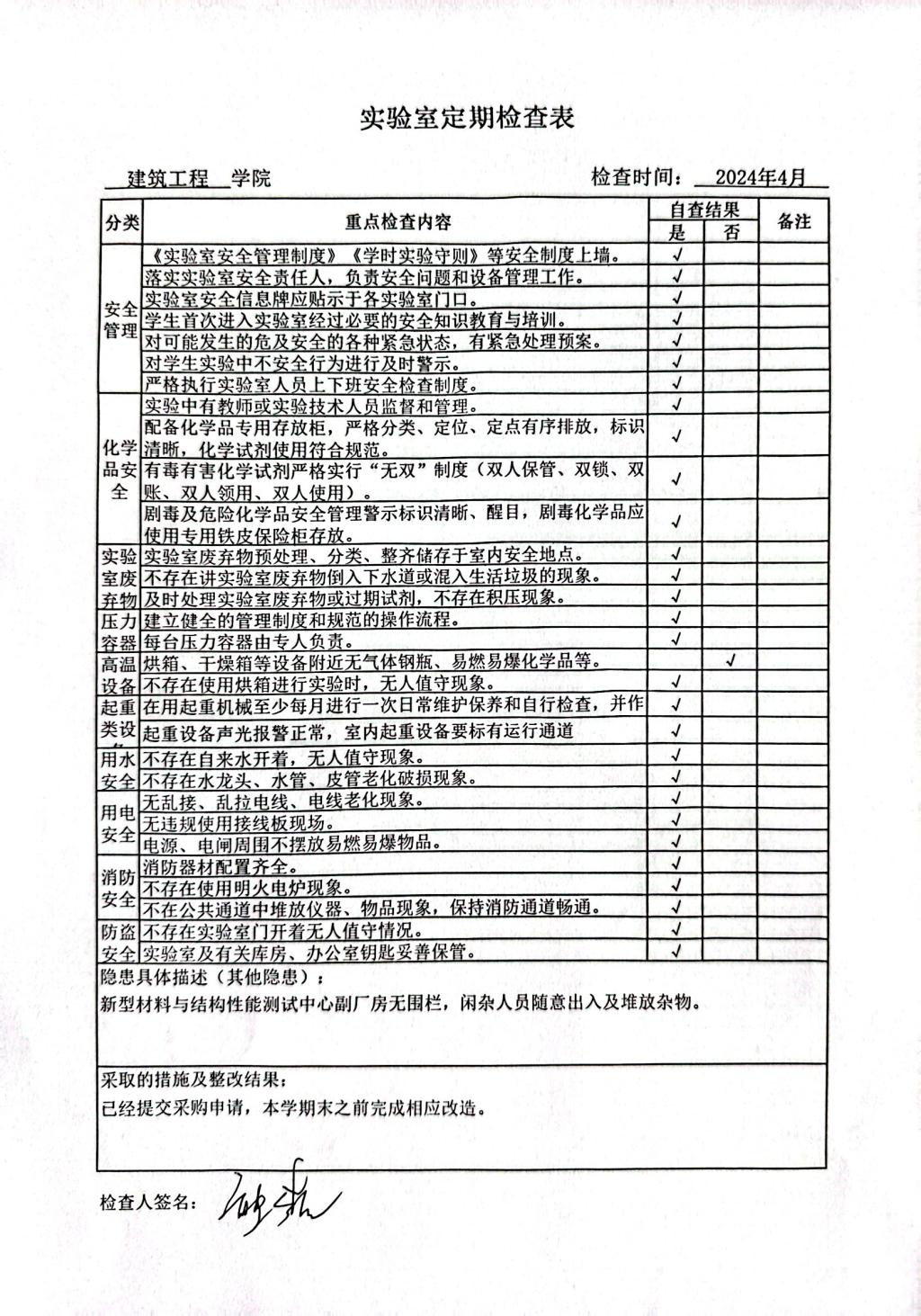 2024年4月建工实验室定期检查情况公示