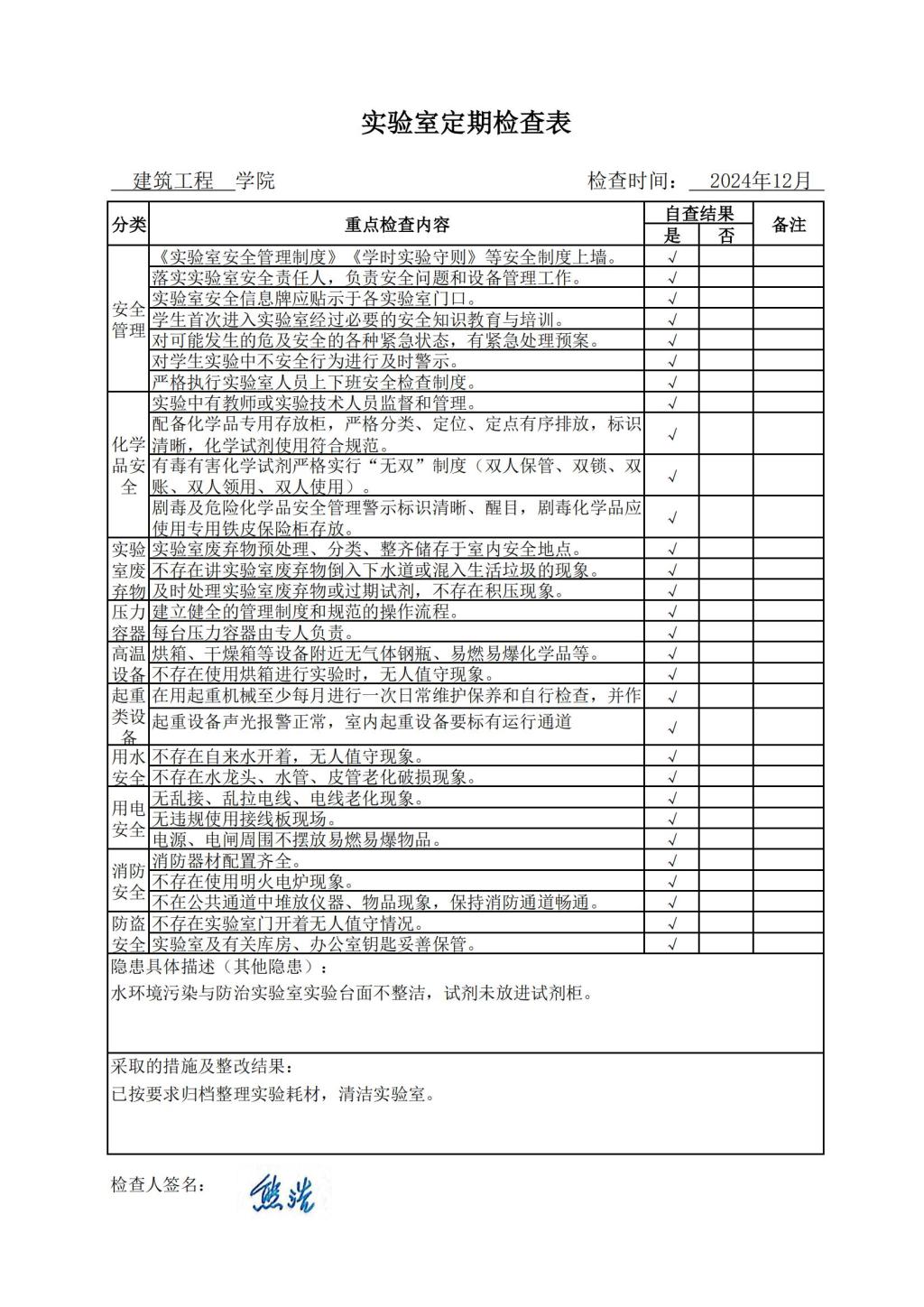 2024年12月建工实验室定期检查情况公示