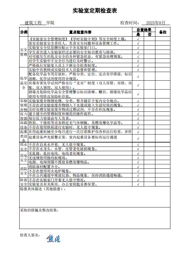 2025年8月建工实验室定期检查情况公示